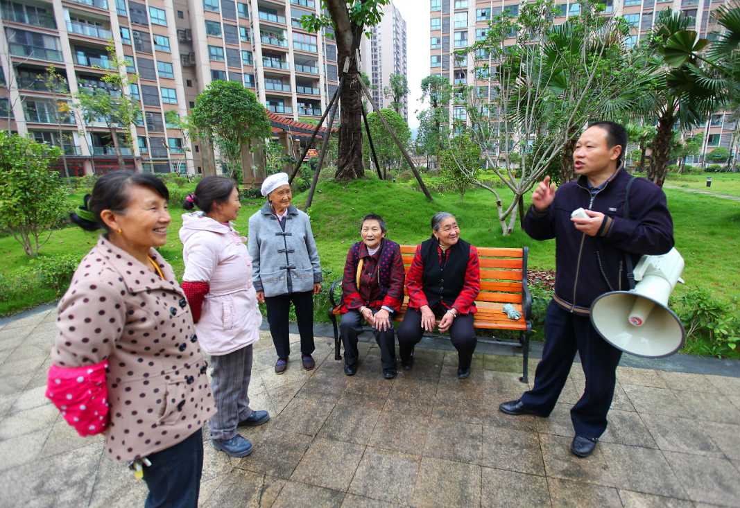 “又到了一年一度办理医疗保险的时候了,还没有办理医疗保险的,请带上你的户口簿或者身份证到社区便民服务中心办理哦!”10月13日,在垫江县城中央华府小区门口,一位手持喇叭的中年人,一边高声喊着,一边朝小区走去。“‘喇叭代表’又来了啊!”看到这位中年人来了,中央华府小区保安马上微笑着给他打开门。“是啊,来做做宣传。”“喇叭代表”微笑着答道。