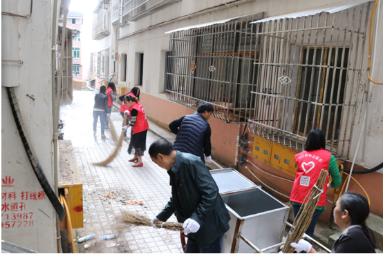 石鼓居委“康养垫江·清洁家园”环境整治活动动员大会结束后,政府职工、村社干部、部分人大代表趁势向赶集的老百姓们进行了广泛的环境保护宣传活动,发放宣传单、宣讲环保知识,走家串户,积极动员全镇居民参与到环境保护中来。随后,全体人员拿着扫帚、铁铲,推着垃圾车,深入到背街小巷进行集镇清扫活动,经过3小时的清扫、铲除、转运垃圾,场镇面貌焕然一新。