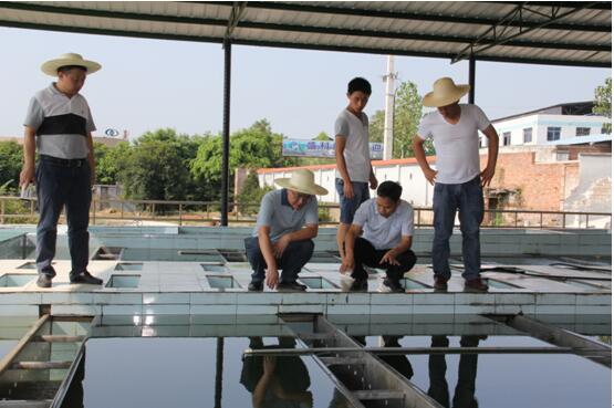 图为8月1日,县镇人大代表在砚台水厂察看水质