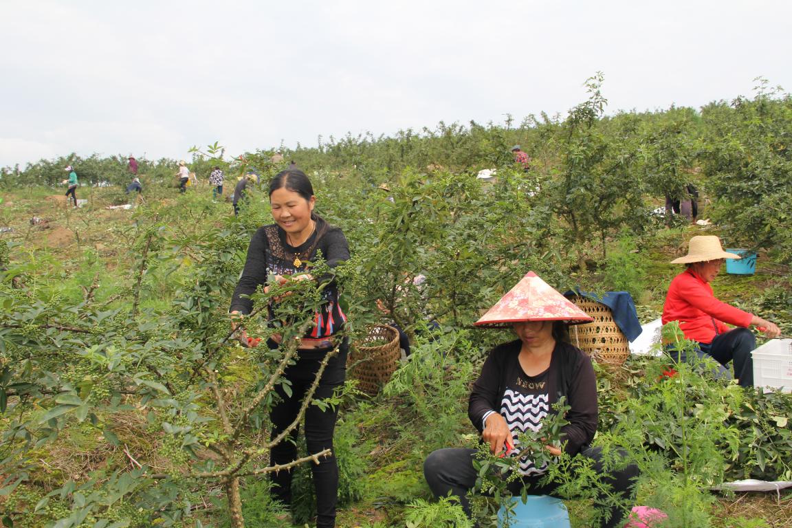 6月3日,在砚台镇人大代表彭万淑的花椒示范基地,250多人在该基地忙着采收花椒。