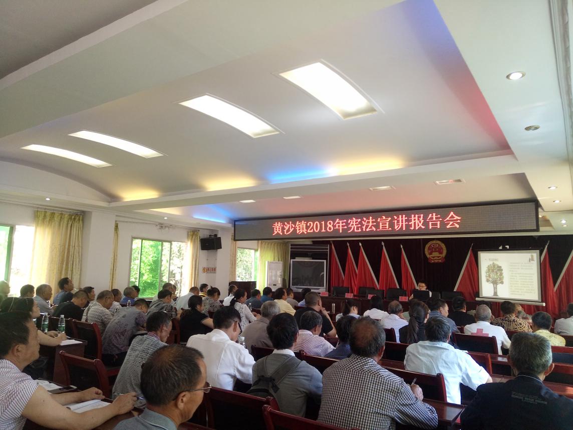 6月5日上午,黄沙镇2018年宪法宣讲报告会在政府计生三楼大会议室召开,黄沙镇人大主席团组织县、镇人大代表参加了宣讲会。