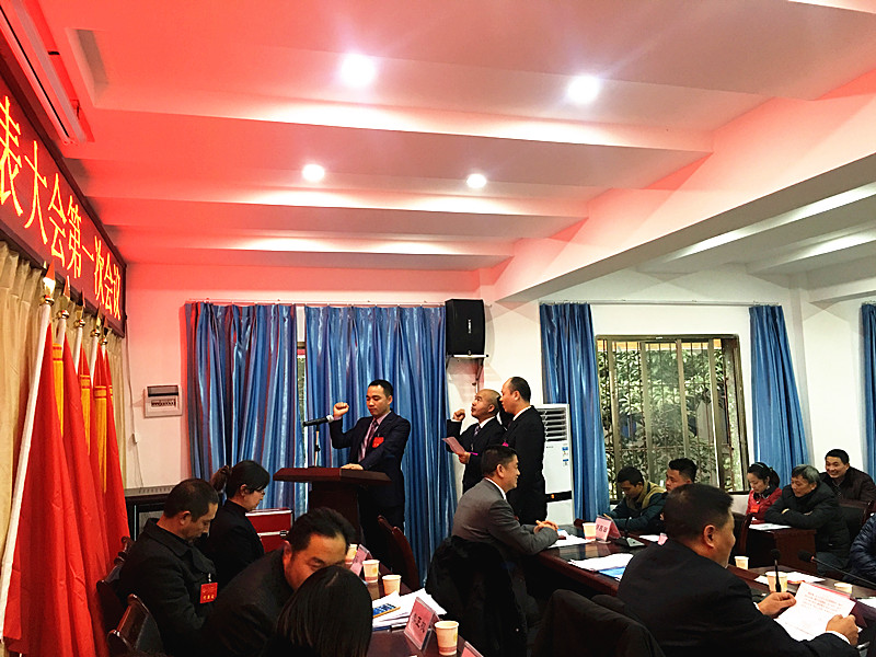 新当选镇长夏建忠,副镇长游绍良、李拥军集体宣誓